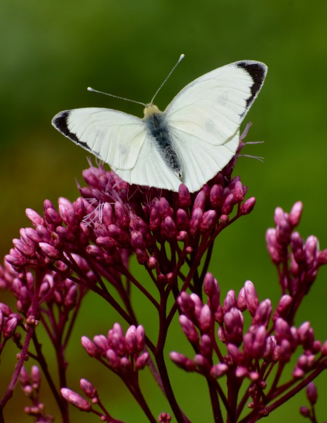 There have been plenty of Red Admirals and Commas about, and a few Small Coppers, though they’ve only ever landed when there’s been no camera to hand. But still quite a lot happening. Took a few shots of a Large White on the remaining daisies. Against the shadows of the long grass in the background they have an almost studio look to them.