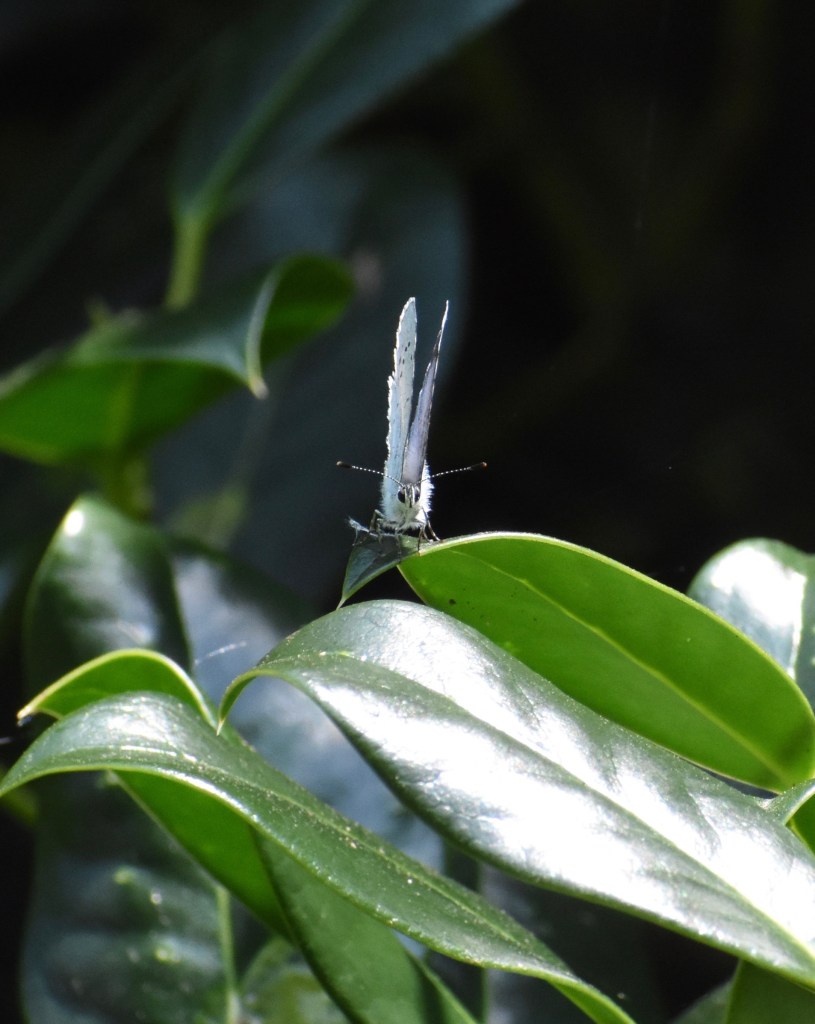 I increased the shutter speed, opened the aperture a bit, zoomed out to give myself a better chance of catching the butterfly in frame, and went for it.