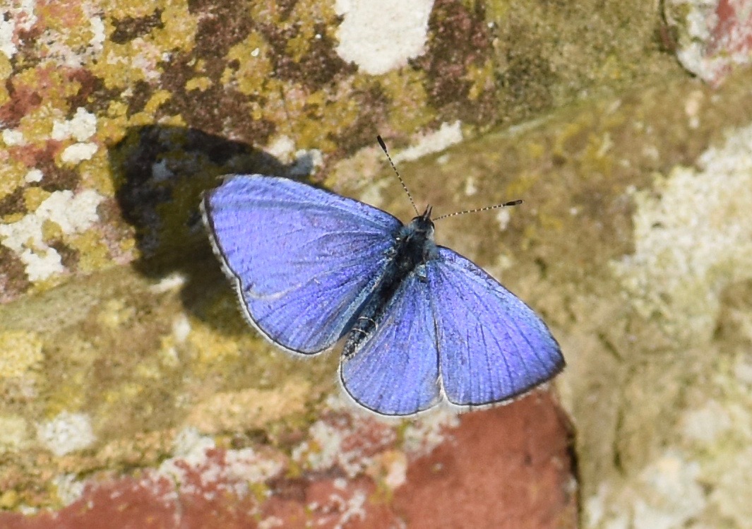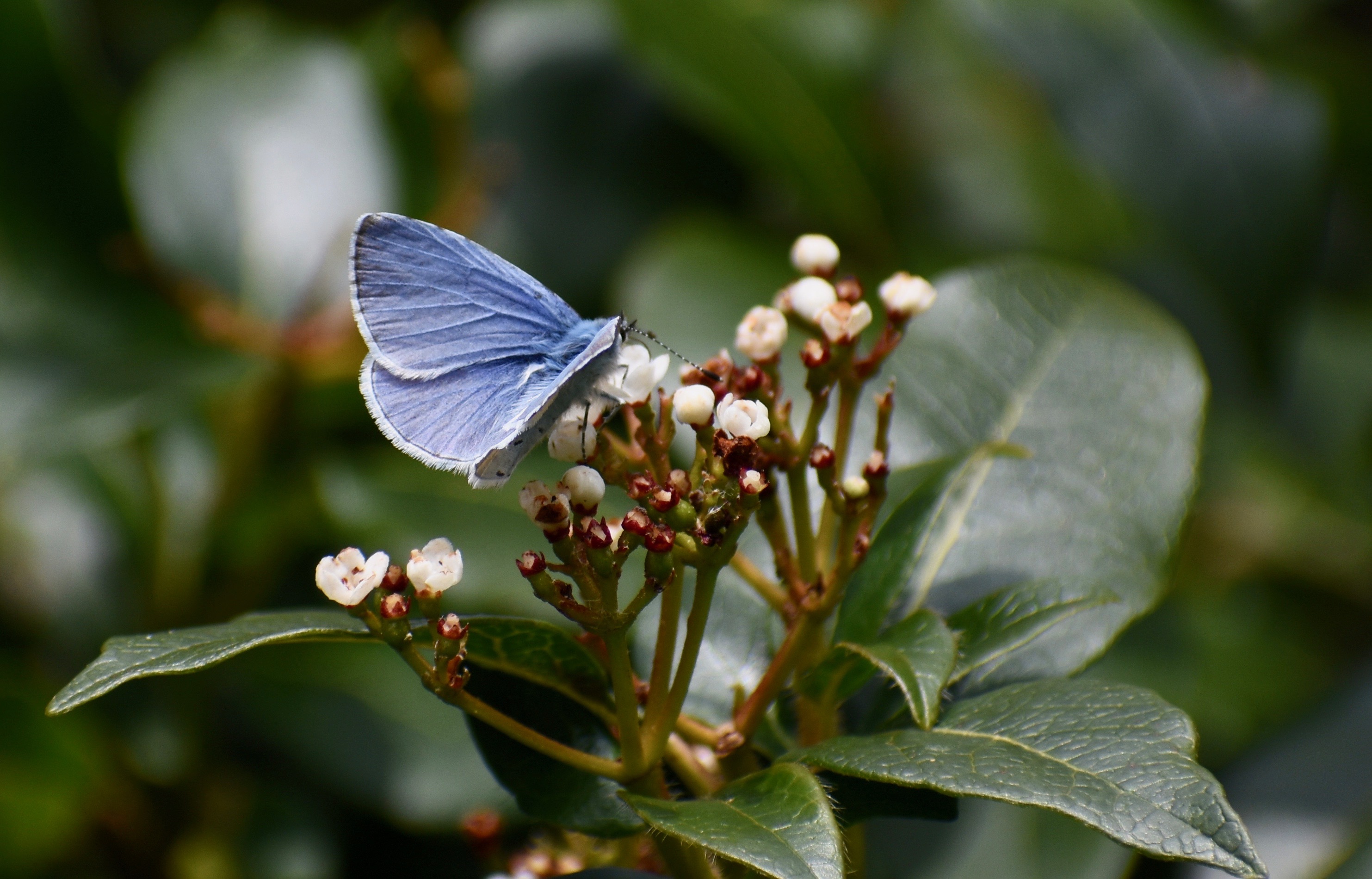 It took till early the following April. I’d been watching a small blue butterfly in the garden flitting around a large evergreen shrub. It seemed quite early in the year to me for Blue butterflies so, as I had my camera with me, I took some pictures when the butterfly finally came to rest. When I saw it through the lens, I was surprised to realise that not only was the upperwing of this butterfly blue, so was its underwing. Which was quite different from the Blues I’d seen up on the plain.