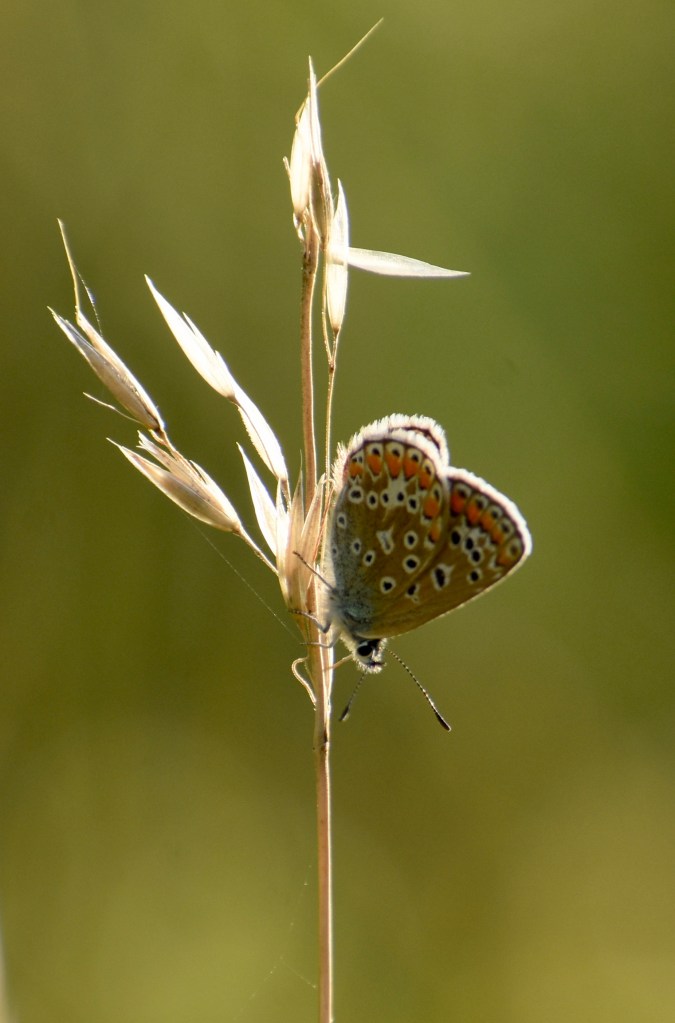 So, not many butterfly pictures lately. We do now have a few Common Blues in the garden and field along with all the Small Whites which seem to be looking for places to lay their eggs at the moment. About a week ago I managed one or two evening shots with low sun of Common Blues. The one at the top is an example. The one below another.