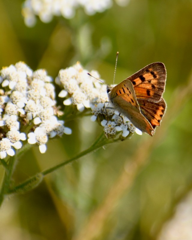Thought it was a female Common Blue flittering about in the long grass (I’d just taken a picture of one) before I saw it through the lens. And then it was up and away and we didn’t see another. The angle wasn’t right for showing off its shiny copper wings, but good to tick off another species for the year.