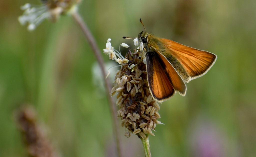 There’s something beguiling about a tiny Essex Skipper staring straight at you with its big dark eyes. Having started off feeling fairly indifferent about them as a group, I developed a bit of a soft spot for Skippers.